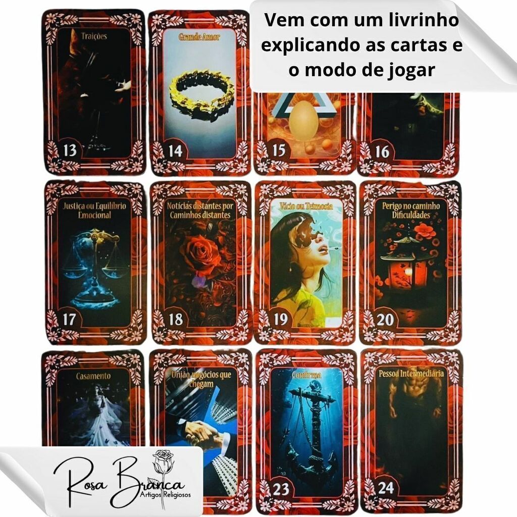 Com cartas vibrantes e simbologia profunda, é perfeito para consultas espirituais, trabalhos de abertura de caminhos e desenvolvimento intuitivo.
